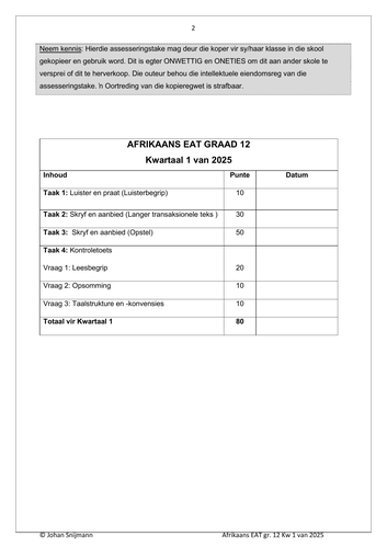 Afrikaans EAT Gr. 12 Assesseringstaak 2025 Kwartaal 1