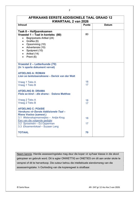 Afrikaans EAT Gr. 12 Assesseringstaak 2026 Kwartaal 2 Vraestel 1