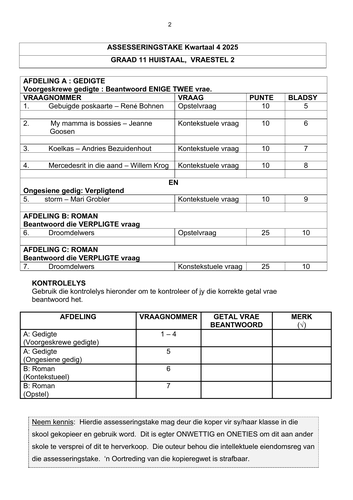 Afrikaans Huistaal Gr. 11 Assesseringstaak 2025 Kwartaal 4 Vraestel 2 Opsie 2Afrikaans Huistaal Gr. 11 Assesseringstaak 2025 Kwartaal 4 Vraestel 2 Opsie 2