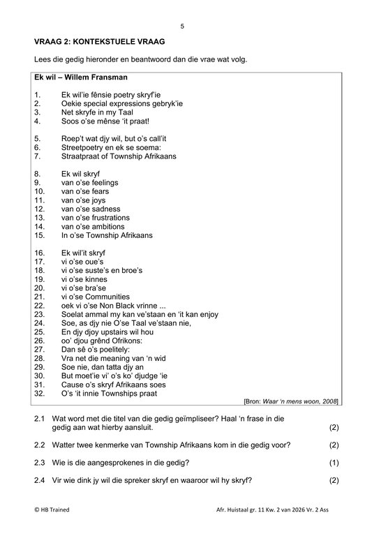 / Afrikaans Huistaal Gr. 11 Assesseringstaak 2026 Kwartaal 2 Vraestel 2