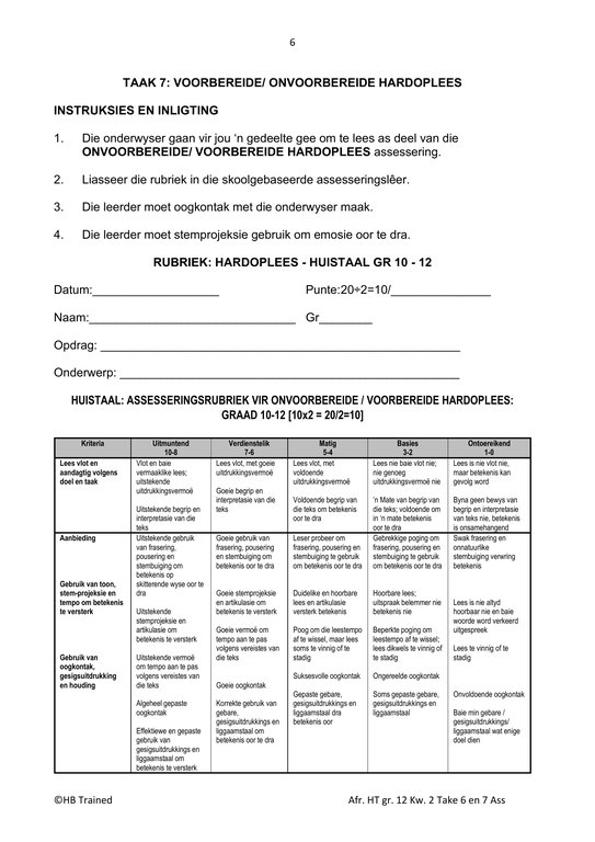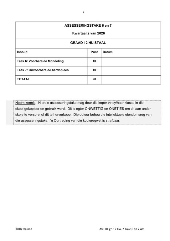Afrikaans Huistaal Gr. 12 Assesseringstaak 2026 Kwartaal 2 Take 6 en 7