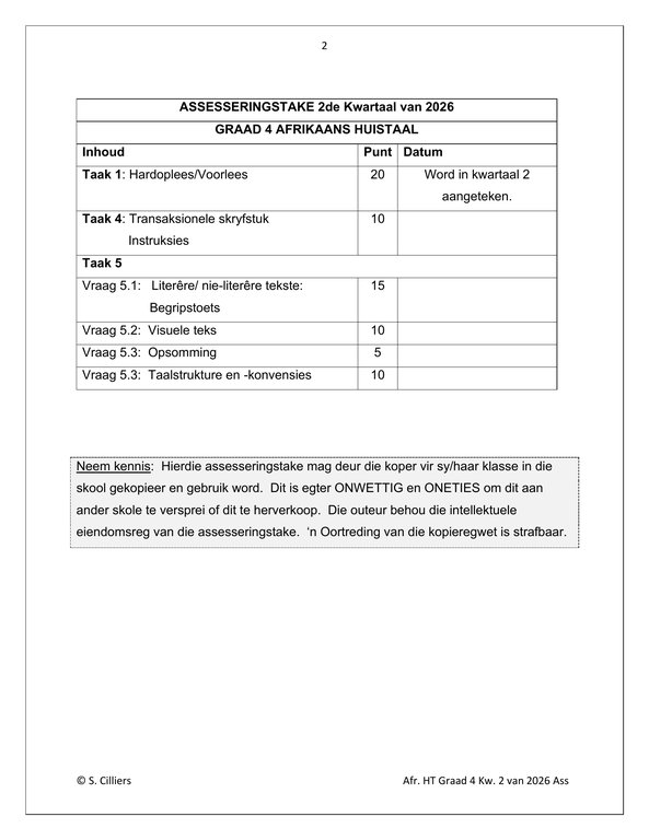 Afrikaans Huistaal Gr. 4 Assesseringstaak 2026 Kwartaal 2Afrikaans Huistaal Gr. 4 Assesseringstaak 2026 Kwartaal 2