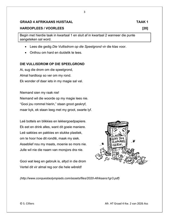 Afrikaans Huistaal Gr. 4 Assesseringstaak 2026 Kwartaal 2