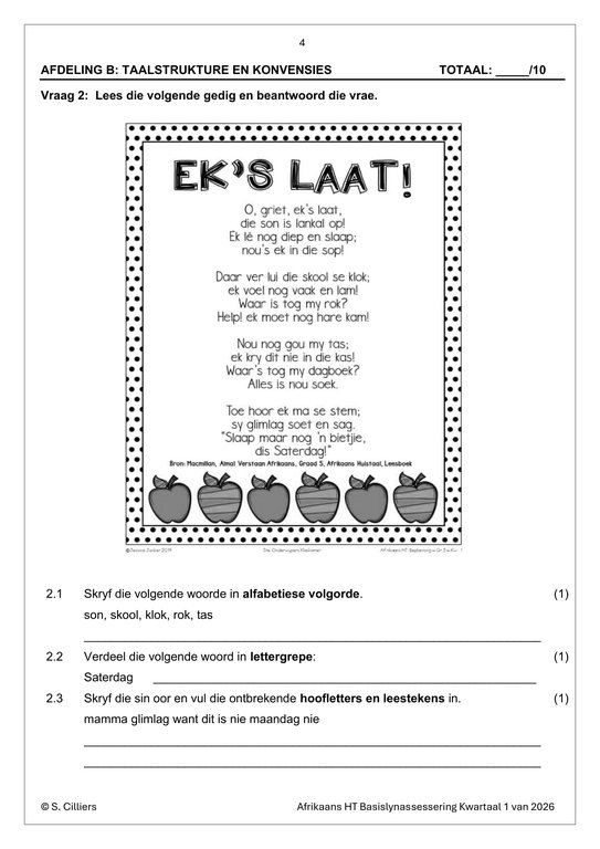 / Afrikaans Huistaal Gr. 4 Basislynassesering 2026