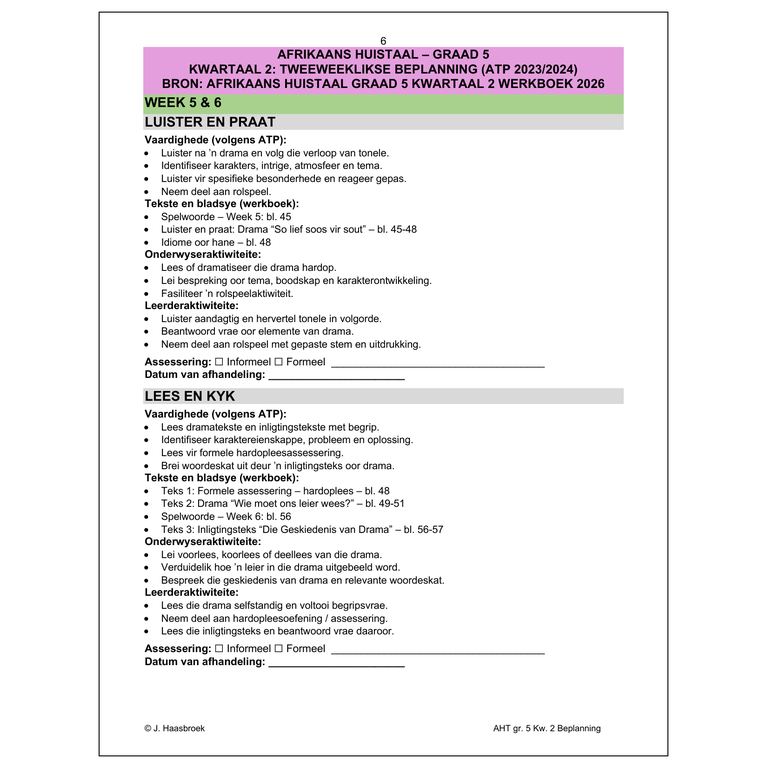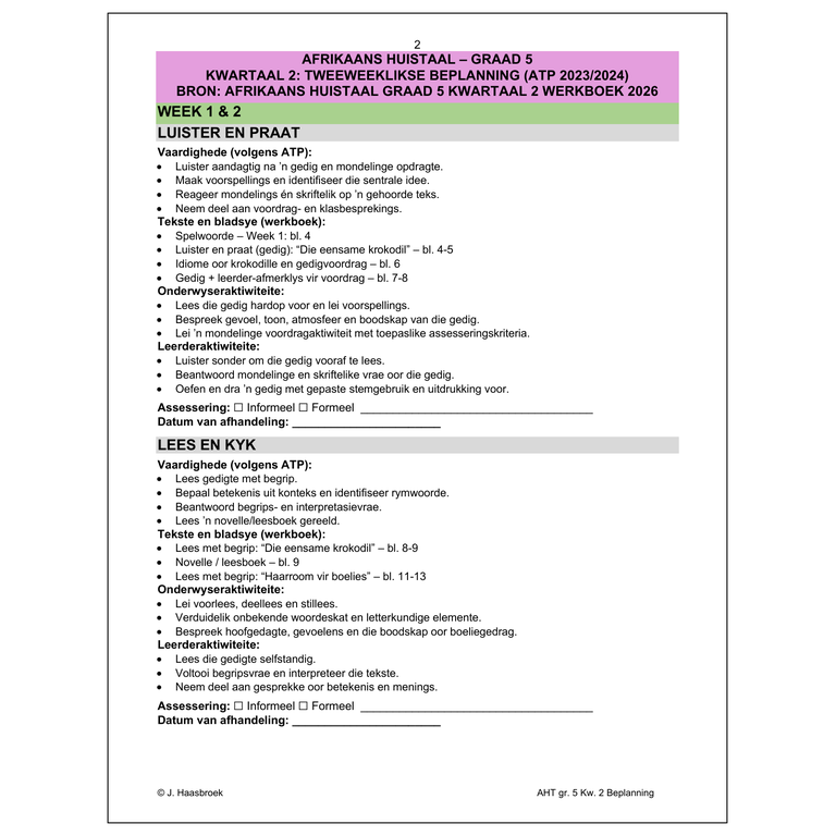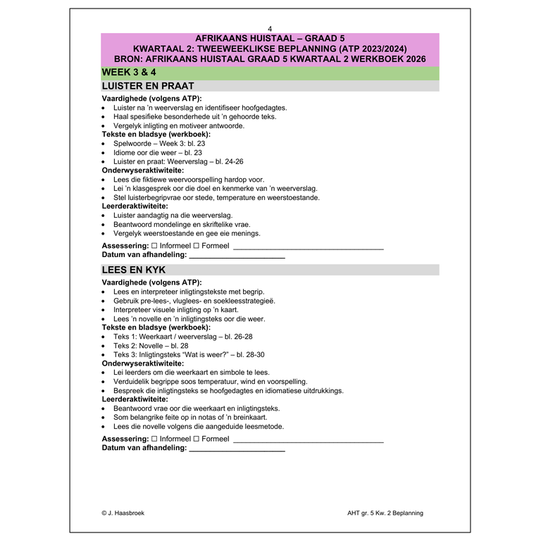 / Afrikaans Huistaal Gr. 5 2026 Kwartaal 2 Beplanning