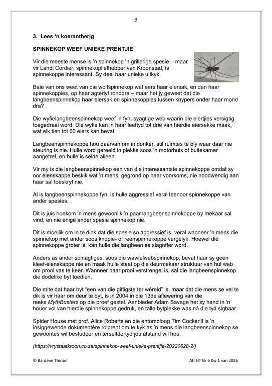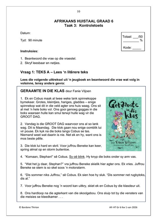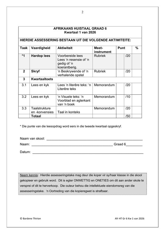 Afrikaans Huistaal Gr. 6 Assesseringstaak 2026 Kwartaal 1Afrikaans Huistaal Gr. 6 Assesseringstaak 2026 Kwartaal 1
