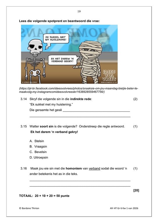Afrikaans Huistaal Gr. 6 Assesseringstaak 2026 Kwartaal 1