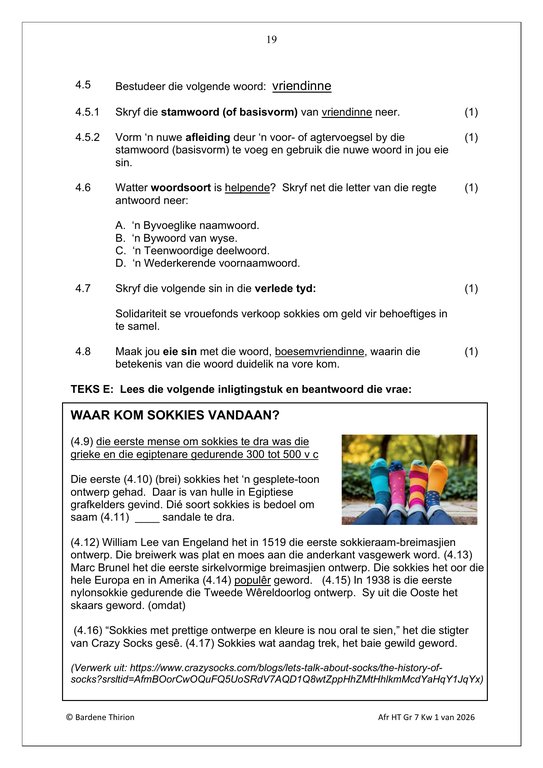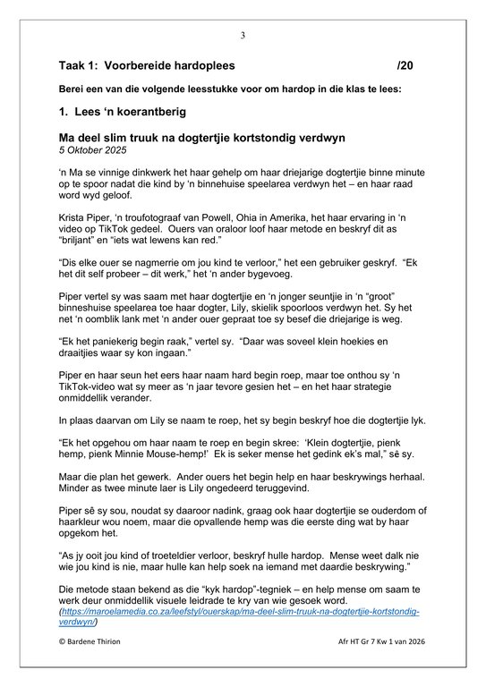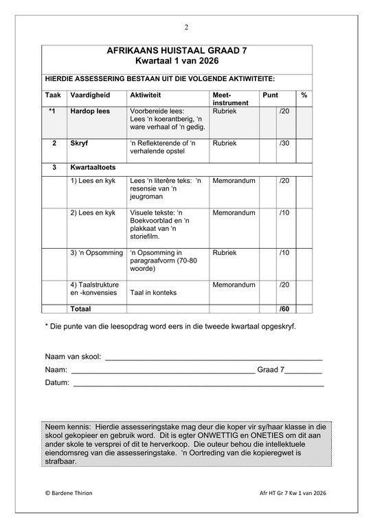 Afrikaans Huistaal Gr. 7 Assesseringstaak 2026 Kwartaal 1Afrikaans Huistaal Gr. 7 Assesseringstaak 2026 Kwartaal 1