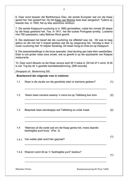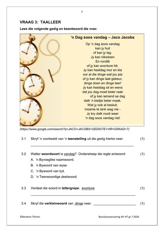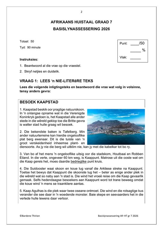 / Afrikaans Huistaal Gr. 7 Basislynassesering 2026