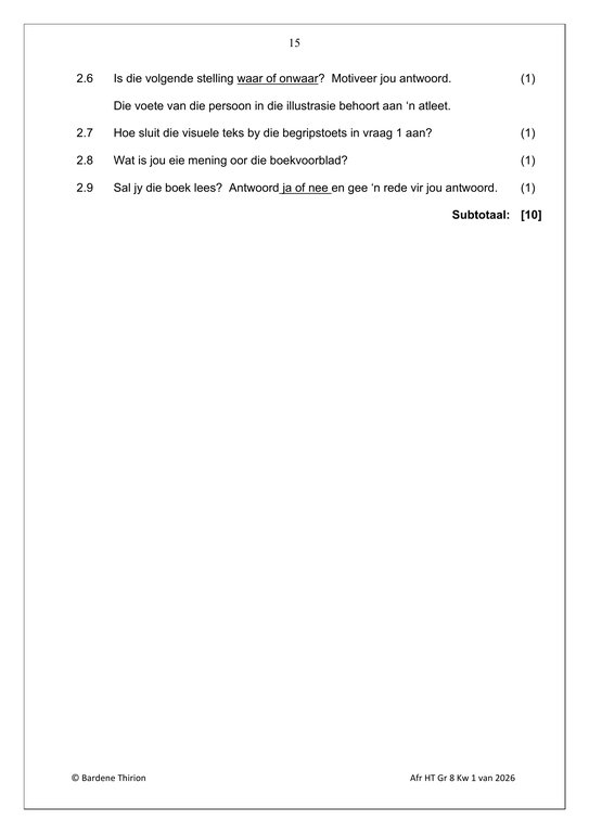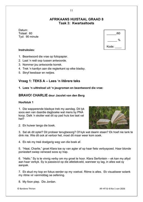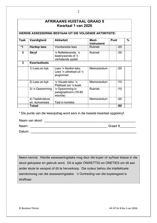 Afrikaans Huistaal Gr. 8 Assesseringstaak 2026 Kwartaal 1Afrikaans Huistaal Gr. 8 Assesseringstaak 2026 Kwartaal 1