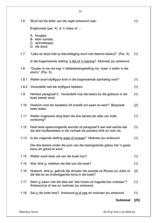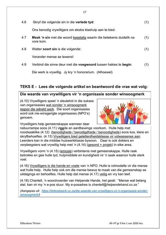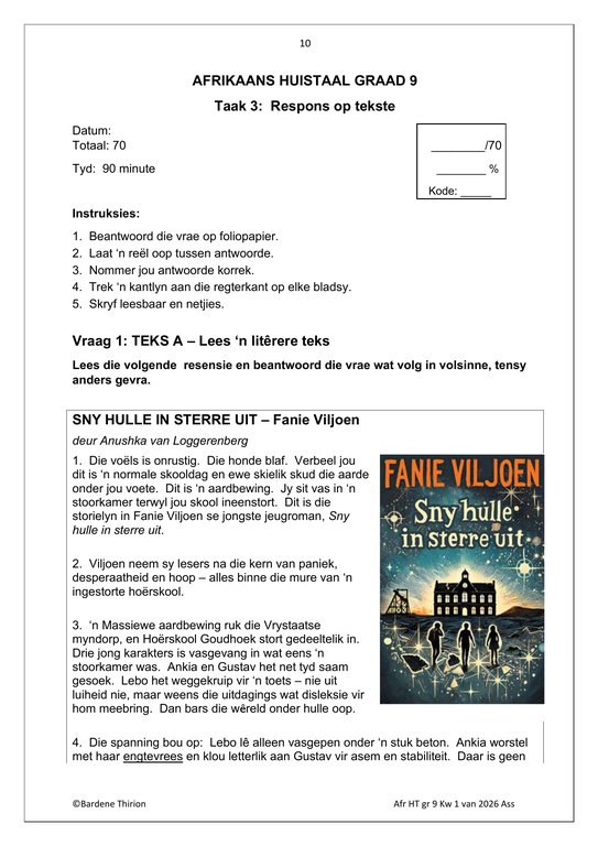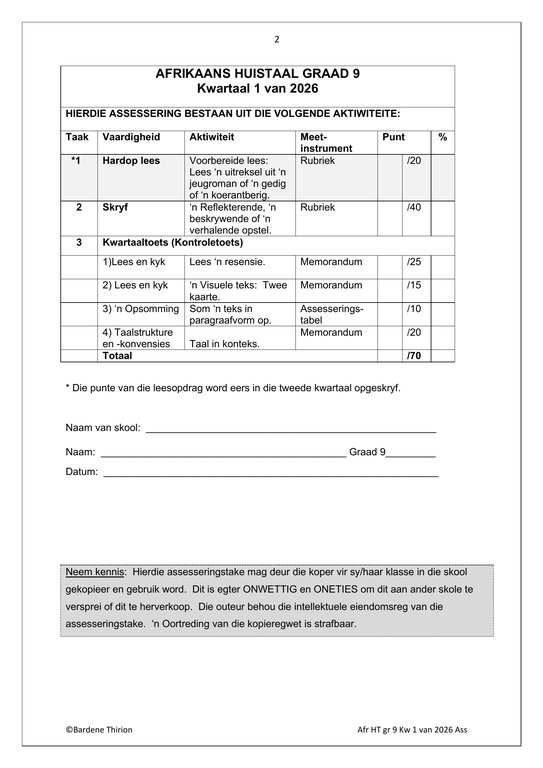 Afrikaans Huistaal Gr. 9 Assesseringstaak 2026 Kwartaal 1Afrikaans Huistaal Gr. 9 Assesseringstaak 2026 Kwartaal 1