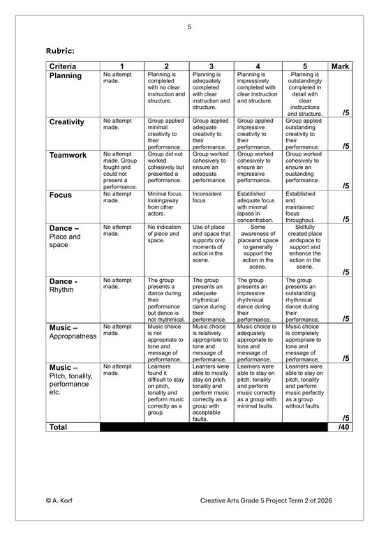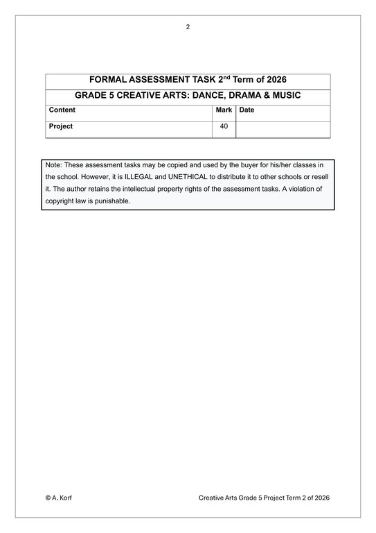 Dance Drama Music (DDM) Gr. 5 Assessment Task 2026 Term 2Dance Drama Music (DDM) Gr. 5 Assessment Task 2026 Term 2