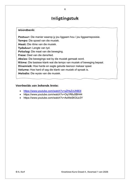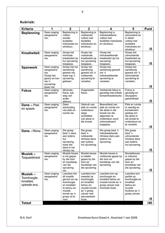 / Dans Drama Musiek (DDM) Gr. 4 Assesseringstaak 2026 Kwartaal 1