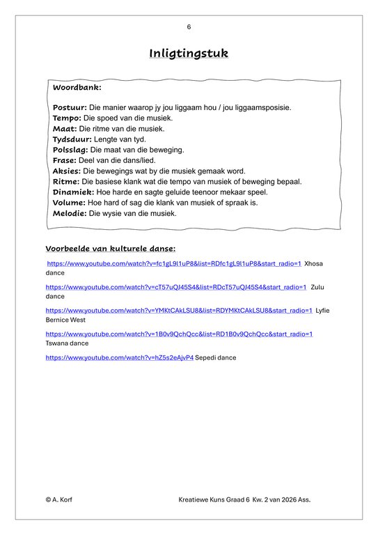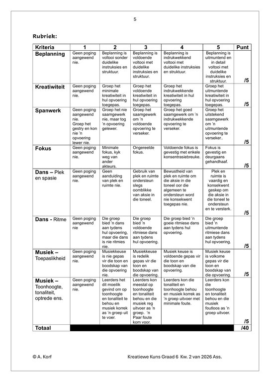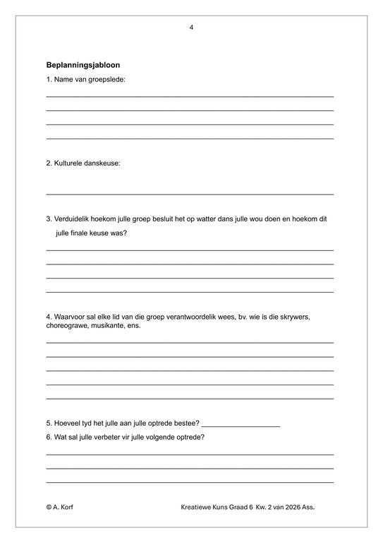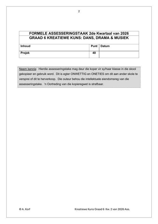 Dans Drama Musiek (DDM) Gr. 6 Assesseringstaak 2026 Kwartaal 2Dans Drama Musiek (DDM) Gr. 6 Assesseringstaak 2026 Kwartaal 2