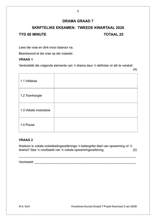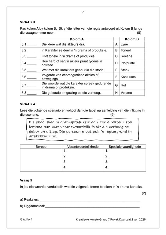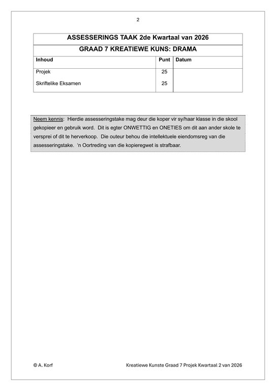 Drama (Afrikaans) Gr. 7 Assesseringstaak 2026 Kwartaal 2