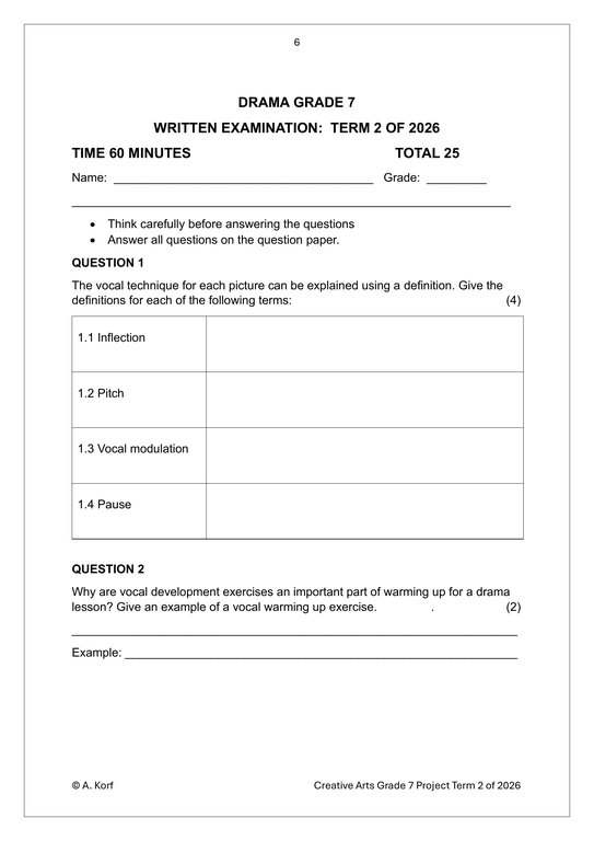 Drama (English) Gr. 7 Assessment Task 2026 Term 2Drama (English) Gr. 7 Assessment Task 2026 Term 2