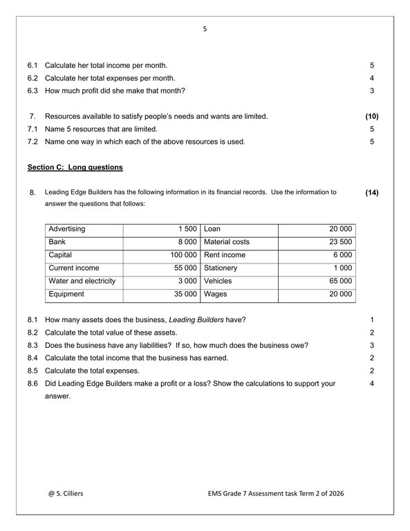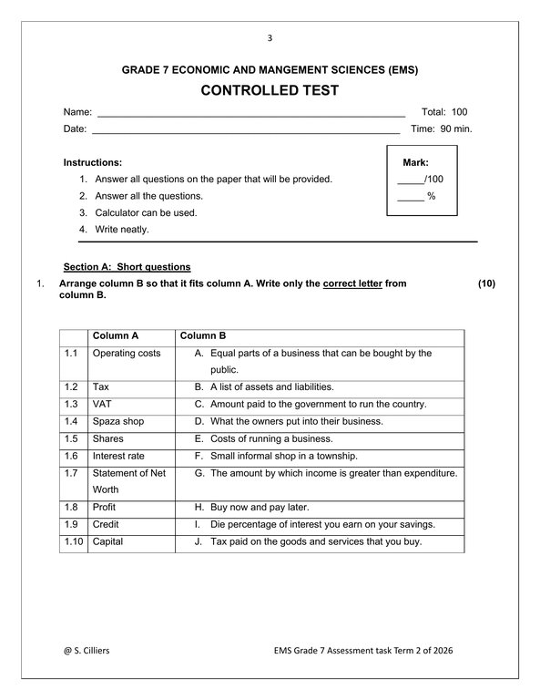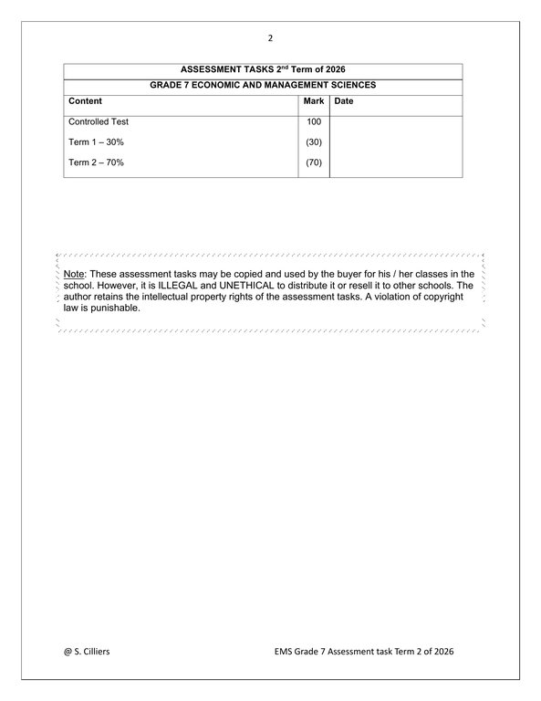 Economic and Management Sciences Gr. 7 Assessment Task 2026 Term 2Economic and Management Sciences Gr. 7 Assessment Task 2026 Term 2