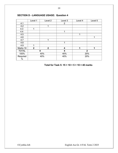 English FAL Gr. 4 Assessment Task 2025 Term 2 quantity