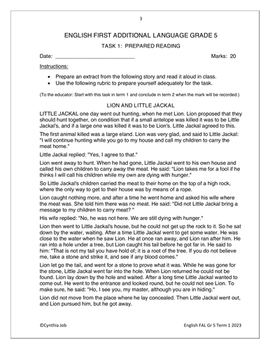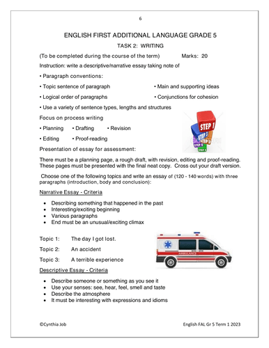 English FAL Gr. 5 Assessment Task 2023 Term 1