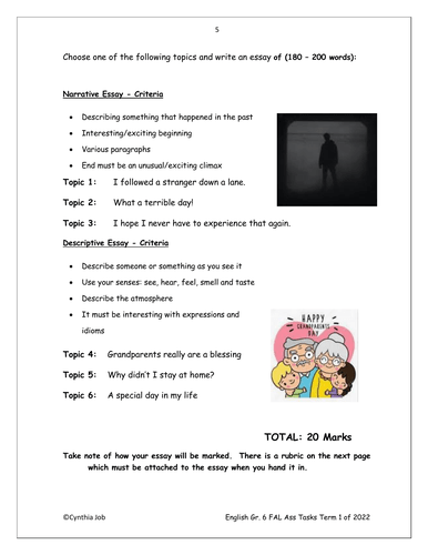 English FAL Gr. 6 Assessment Task 2022 Term 1English FAL Gr. 6 Assessment Task 2022 Term 1