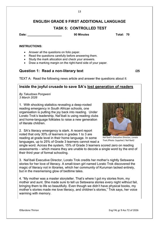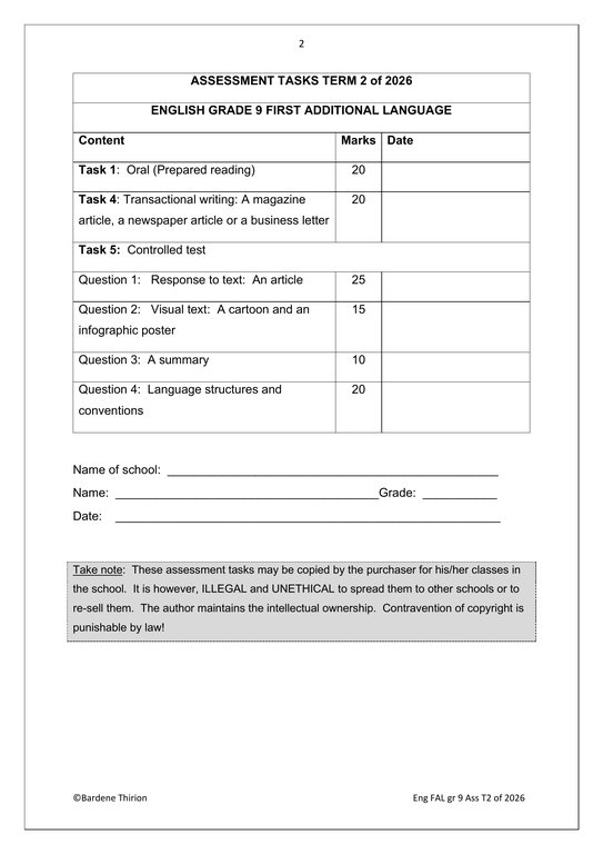 English FAL Gr. 9 Assessment Task 2026 Term 2English FAL Gr. 9 Assessment Task 2026 Term 2