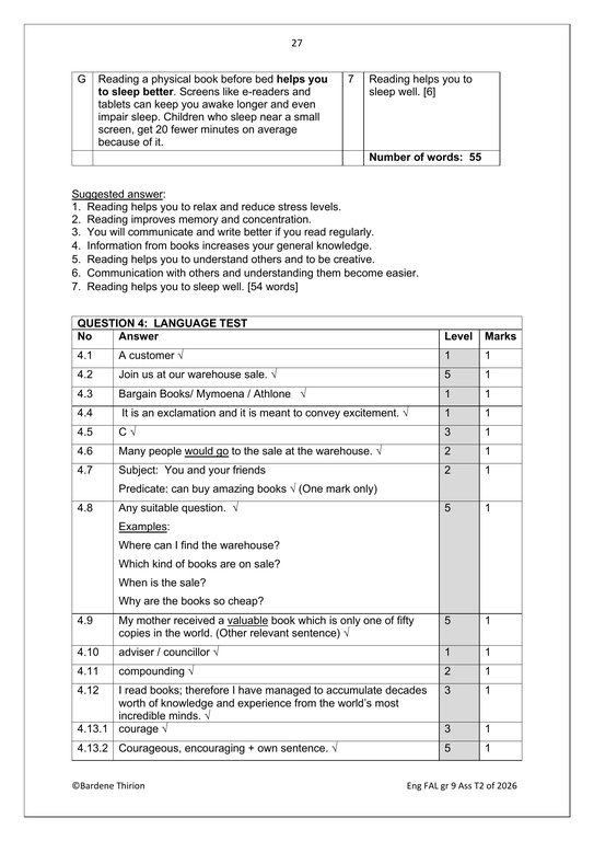English FAL Gr. 9 Assessment Task 2026 Term 2