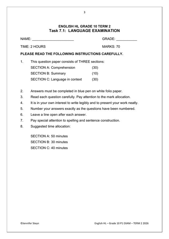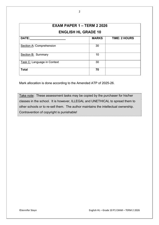 English Home Language Gr. 10 Assessment Task 2026 Term 2 Paper 1English Home Language Gr. 10 Assessment Task 2026 Term 2 Paper 1