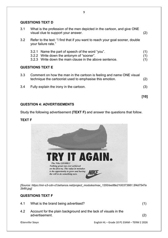 English Home Language Gr. 10 Assessment Task 2026 Term 2 Paper 1