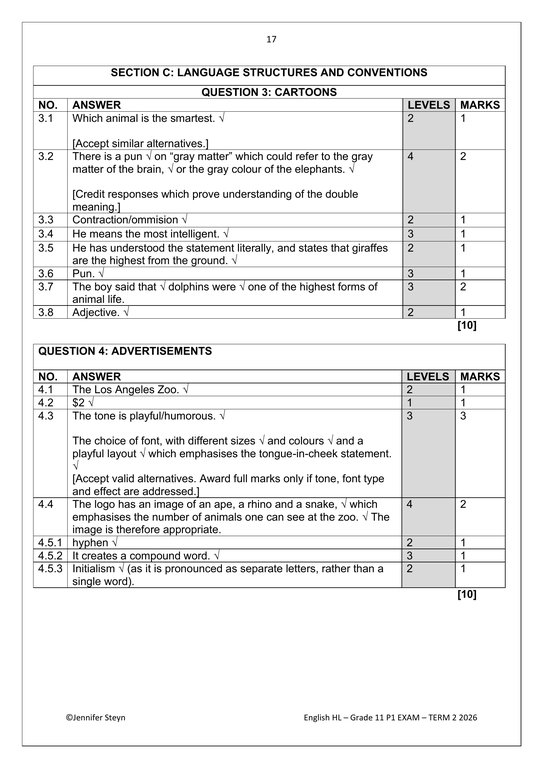 English Home Language Gr. 11 Assessment Task 2026 Term 2 Paper 1