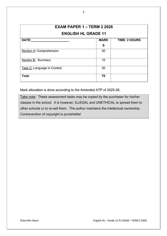 English Home Language Gr. 11 Assessment Task 2026 Term 2 Paper 1English Home Language Gr. 11 Assessment Task 2026 Term 2 Paper 1