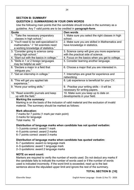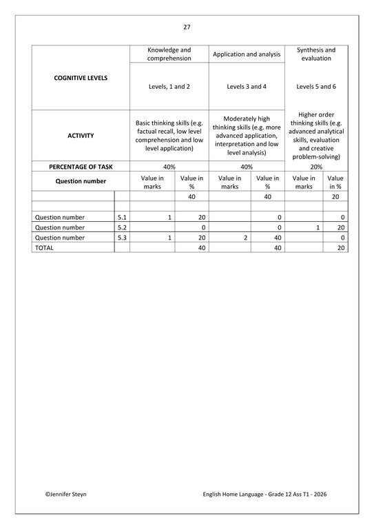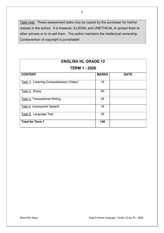 English Home Language Gr. 12 Assessment Task 2026 Term 1
