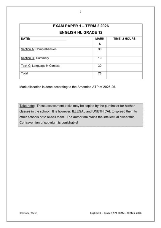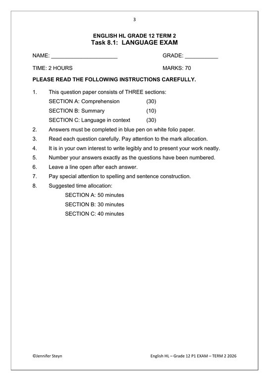 English Home Language Gr. 12 Assessment Task 2026 Term 2 Paper 1English Home Language Gr. 12 Assessment Task 2026 Term 2 Paper 1
