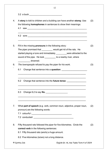 English Home Language Gr. 4 Assessment Task 2024 Term 4 quantity