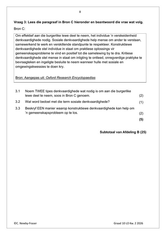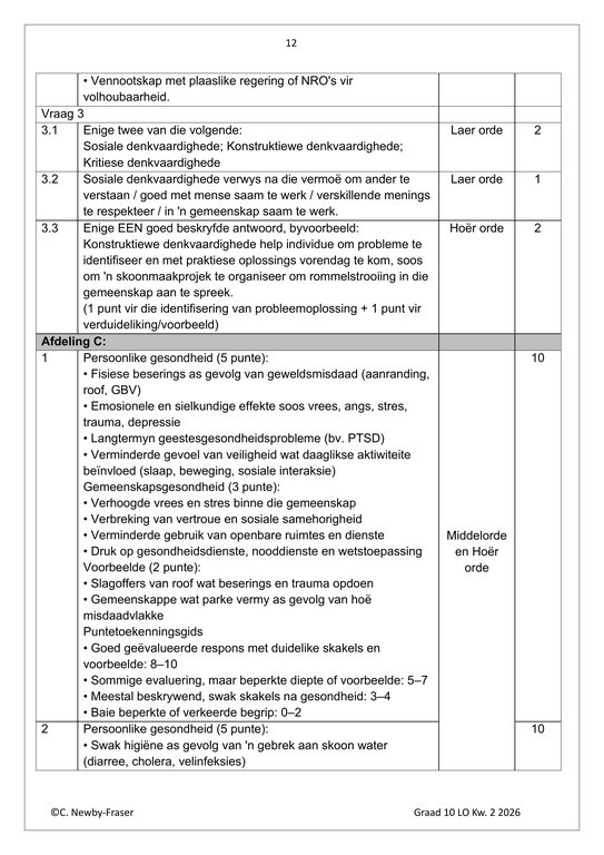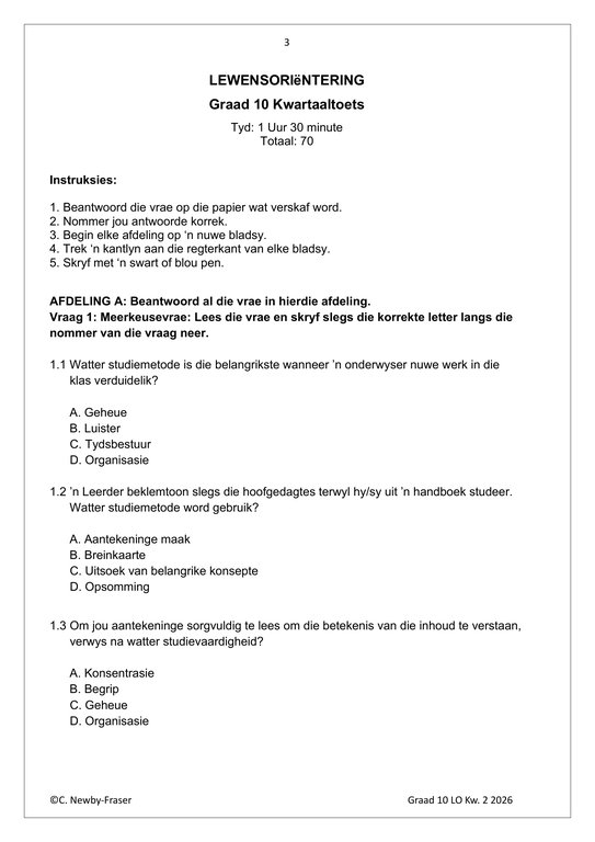 Lewensvaardighede (PSW) Gr. 10 Assesseringstaak 2026 Kwartaal 2