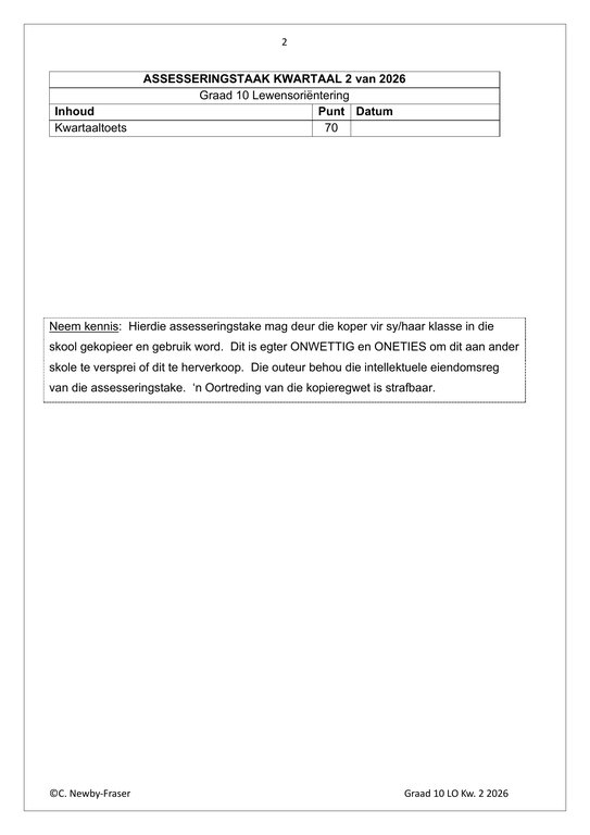Lewensvaardighede (PSW) Gr. 10 Assesseringstaak 2026 Kwartaal 2Lewensvaardighede (PSW) Gr. 10 Assesseringstaak 2026 Kwartaal 2