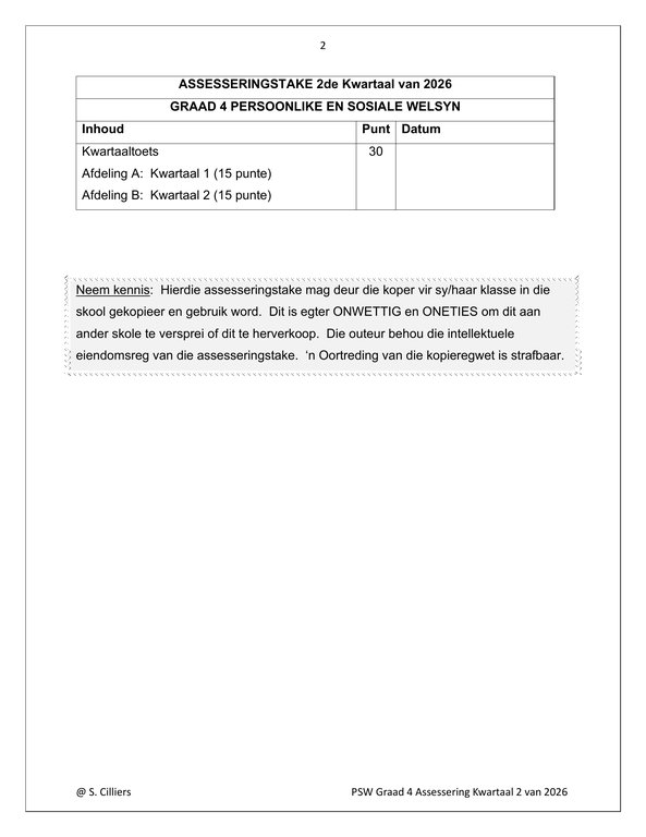 Lewensvaardighede (PSW) Gr. 4 Assesseringstaak 2026 Kwartaal 2