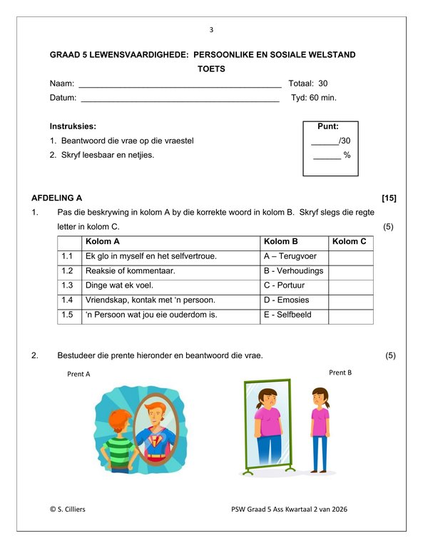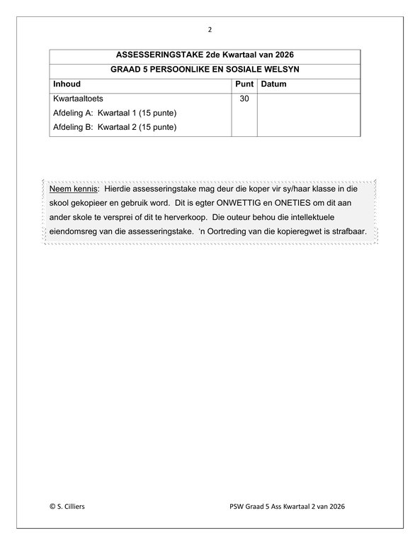 Lewensvaardighede (PSW) Gr. 5 Assesseringstaak 2026 Kwartaal 2