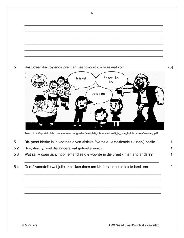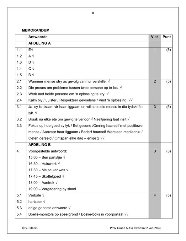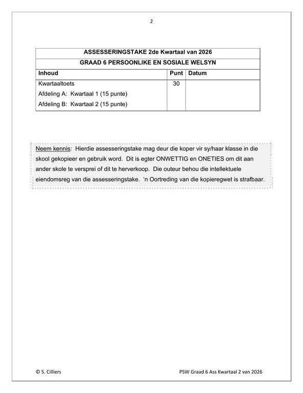 Lewensvaardighede (PSW) Gr. 6 Assesseringstaak 2026 Kwartaal 2Lewensvaardighede (PSW) Gr. 6 Assesseringstaak 2026 Kwartaal 2
