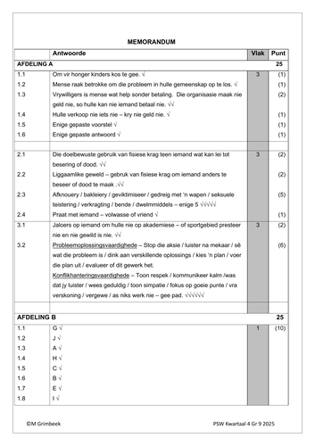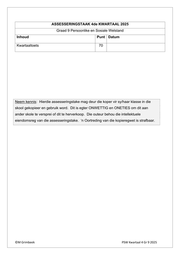 / Lewensvaardighede (PSW) Gr. 9 Assesseringstaak 2025 Kwartaal 4
