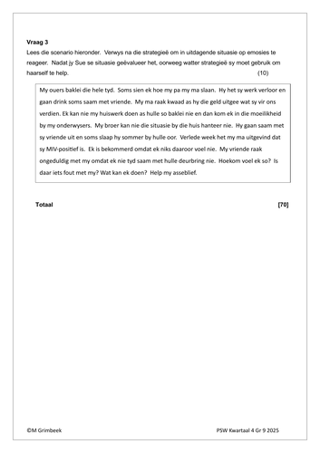 Lewensvaardighede (PSW) Gr. 9 Assesseringstaak 2025 Kwartaal 4
