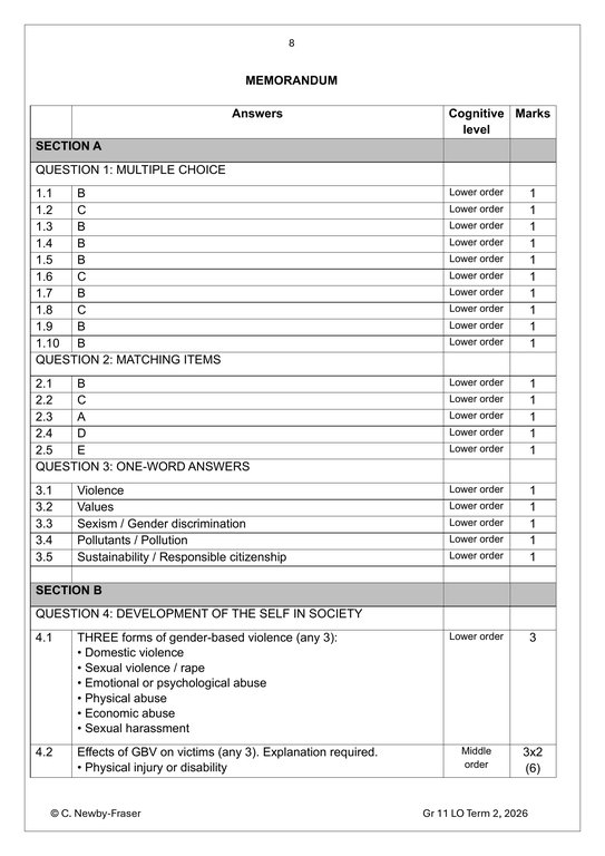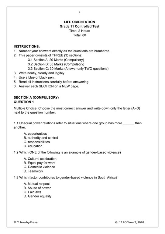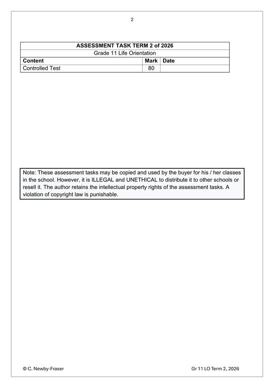 Life Skills (PSW) Gr. 11 Assessment Task 2026 Term 2Life Skills (PSW) Gr. 11 Assessment Task 2026 Term 2