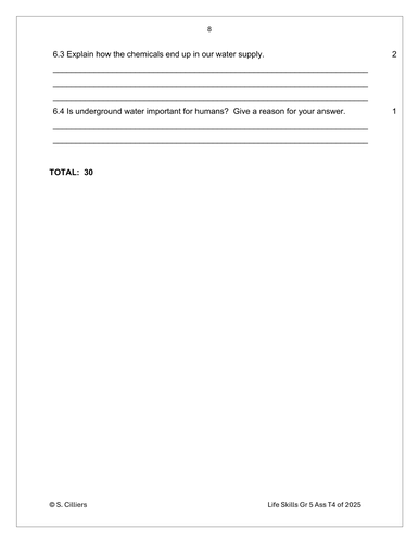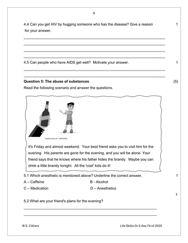 Life Skills (PSW) Gr. 5 Assessment Task 2025 Term 4 quantity