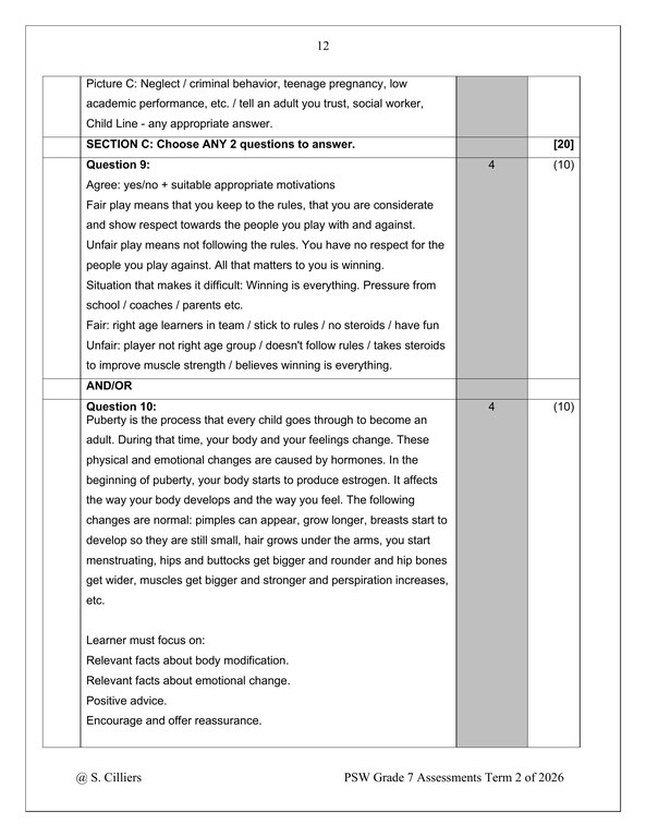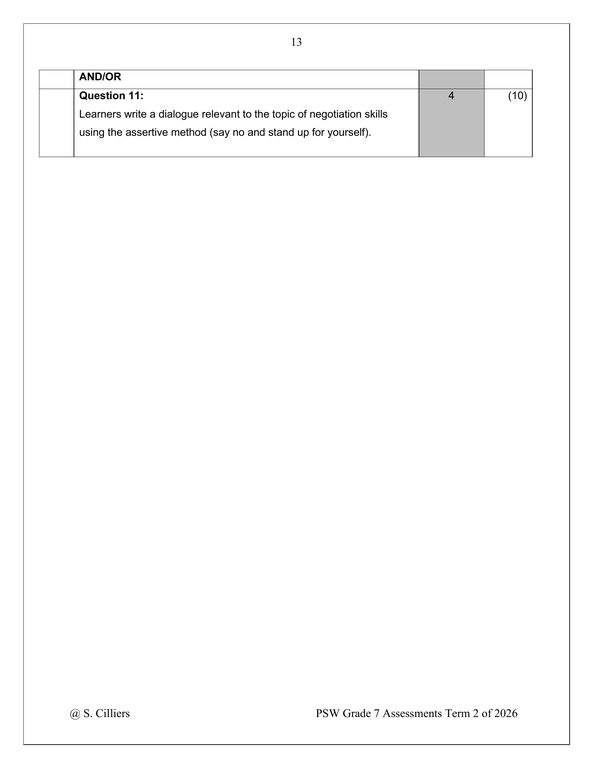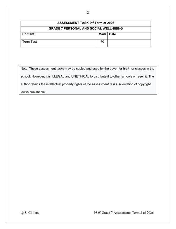 Life Skills (PSW) Gr. 7 Assessment Task 2026 Term 2Life Skills (PSW) Gr. 7 Assessment Task 2026 Term 2