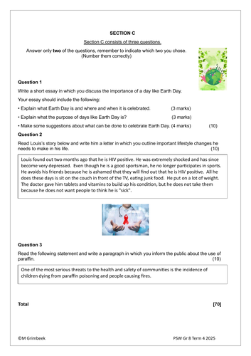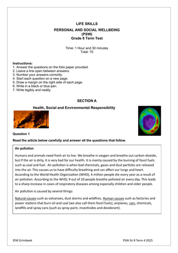 Life Skills (PSW) Gr. 8 Assessment Task 2025 Term 4