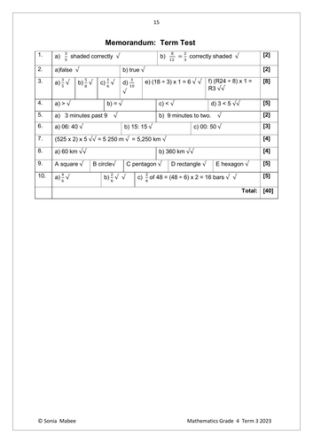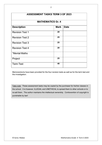 / Mathematics Gr. 4 Assessment Task 2023 Term 3