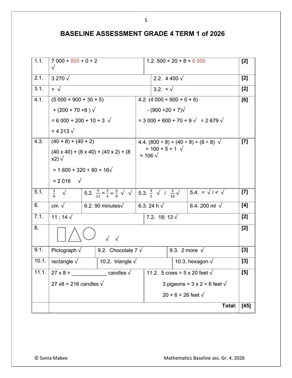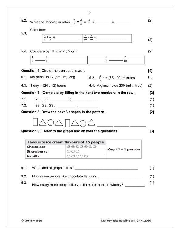 Mathematics Gr. 4 Baseline assessment 2026