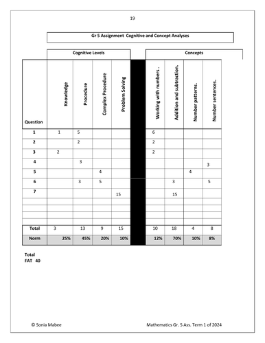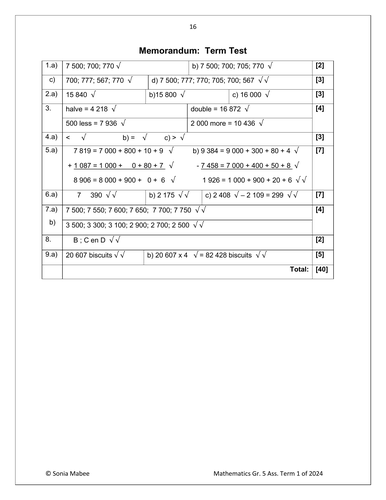 Mathematics Gr. 5 Assessment Task 2024 Term 1