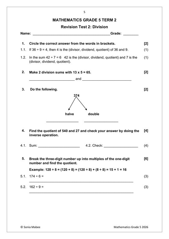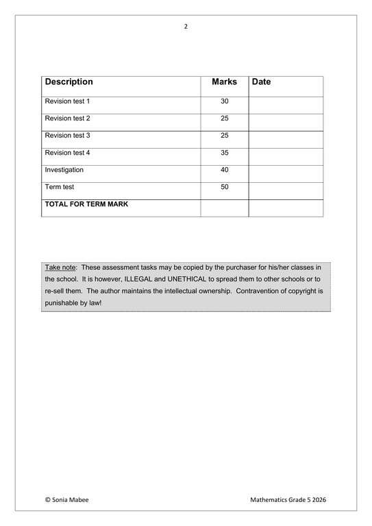 Mathematics Gr. 5 Assessment Task 2026 Term 2Mathematics Gr. 5 Assessment Task 2026 Term 2