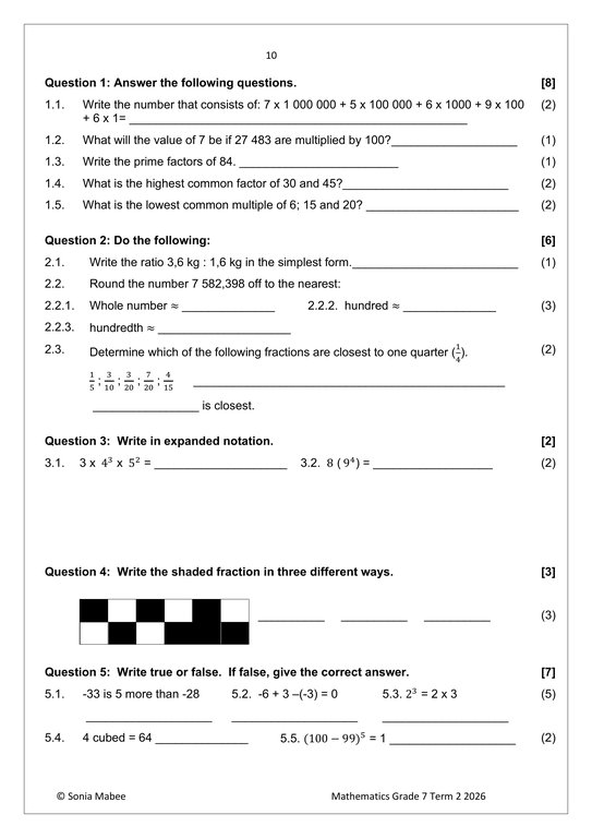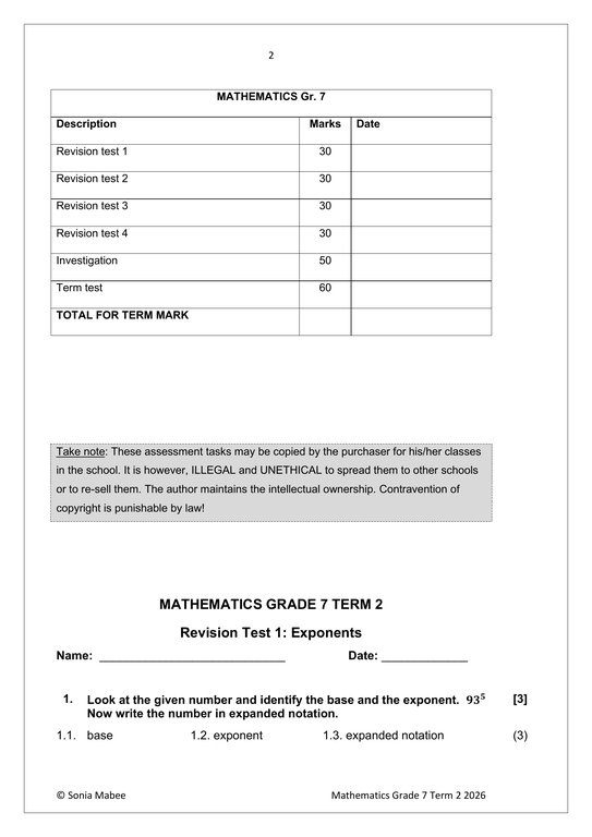 Mathematics Gr. 7 Assessment Task 2026 Term 2