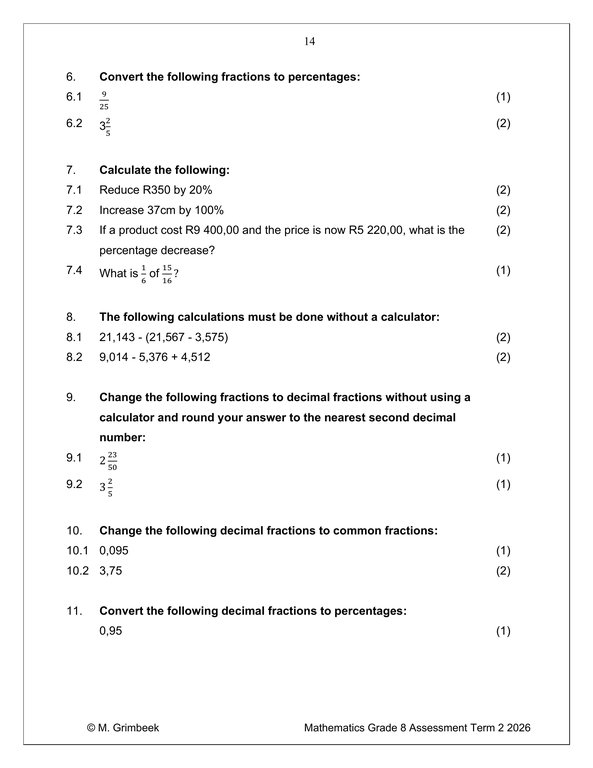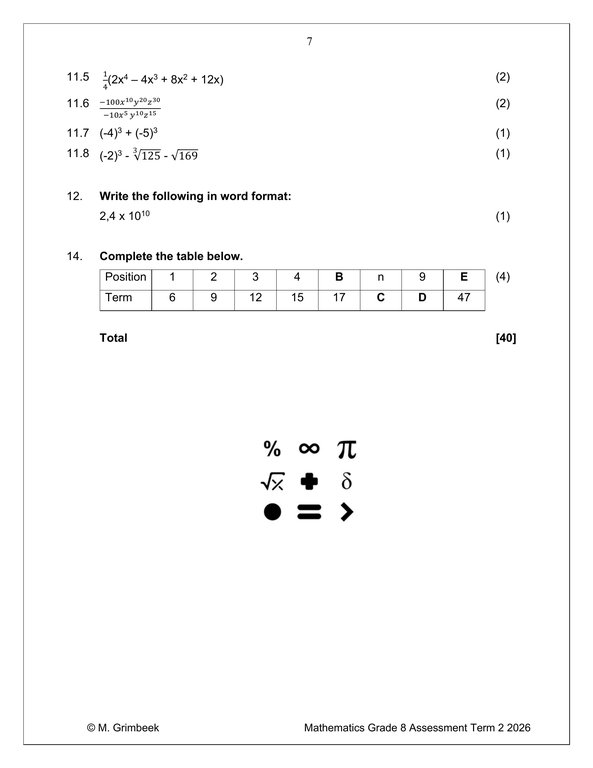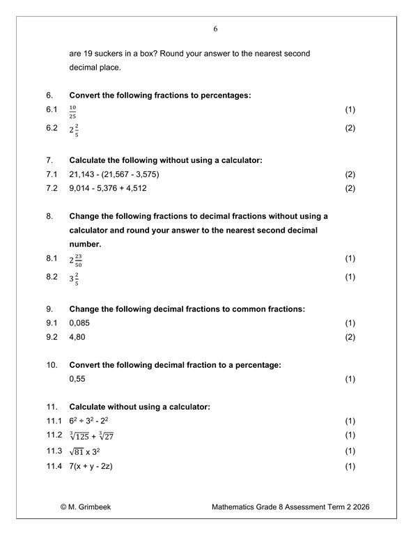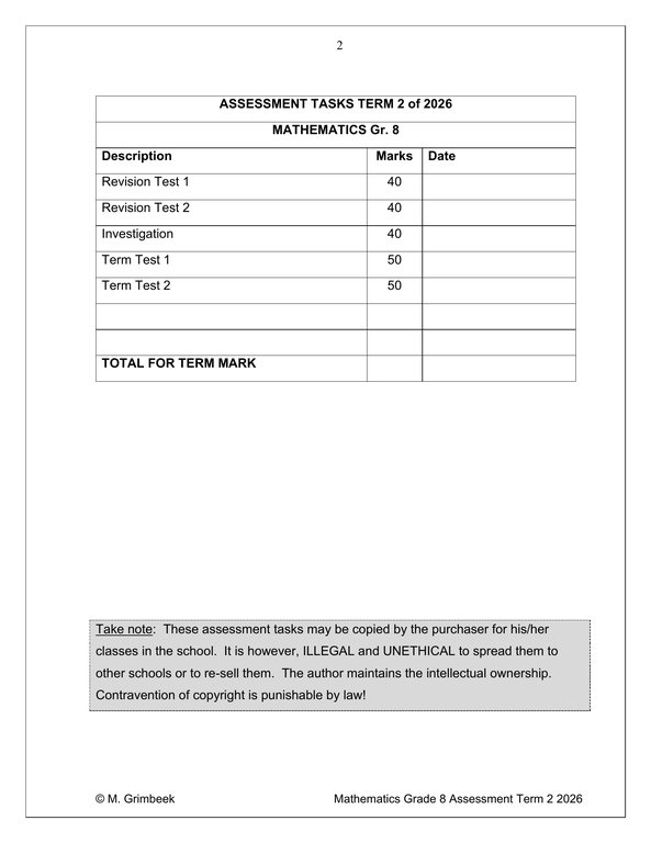 Mathematics Gr. 8 Assessment Task 2026 Term 2